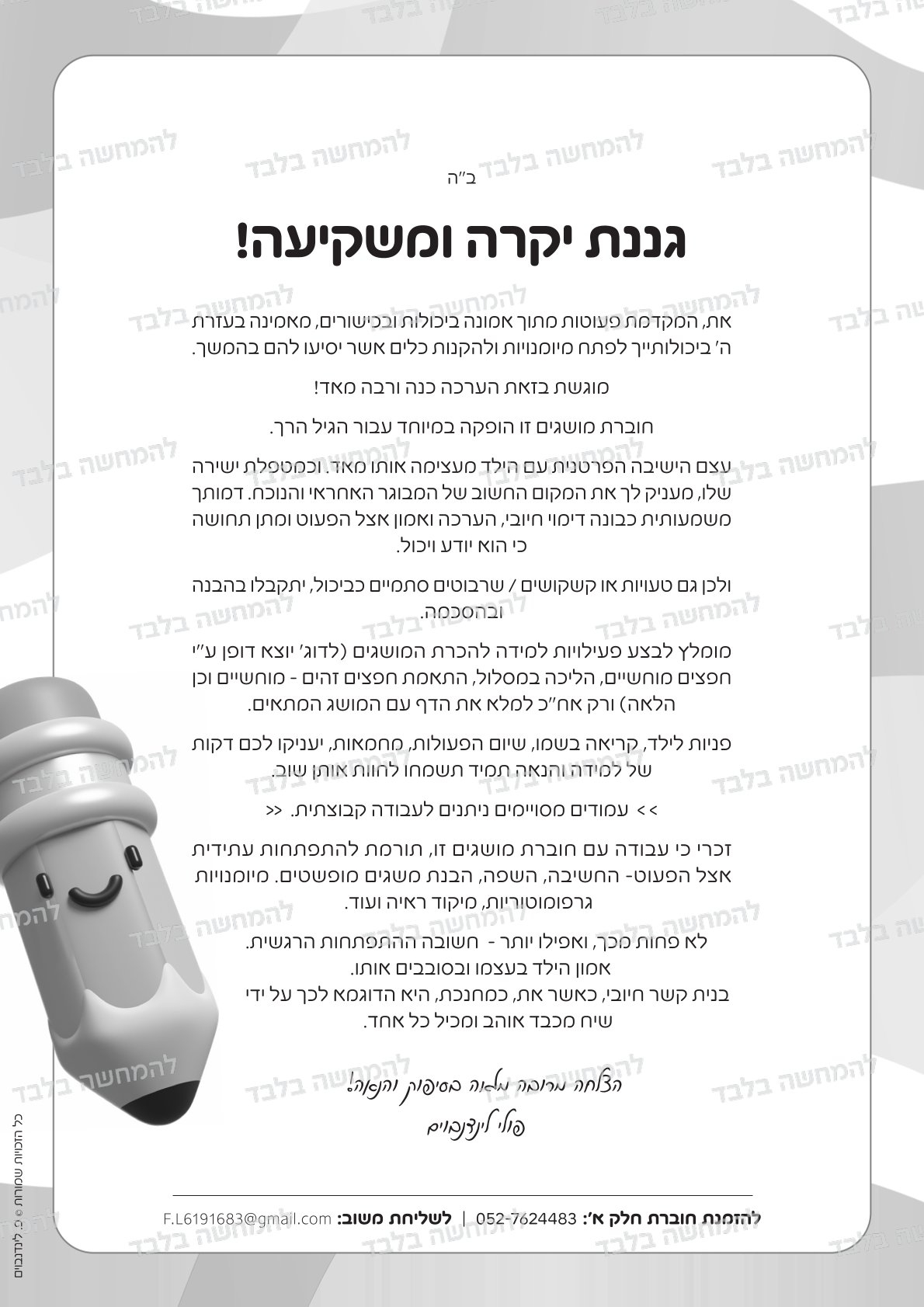 • בקניה אחת, ניתן להדפיס רק למעון / גן אחד.
