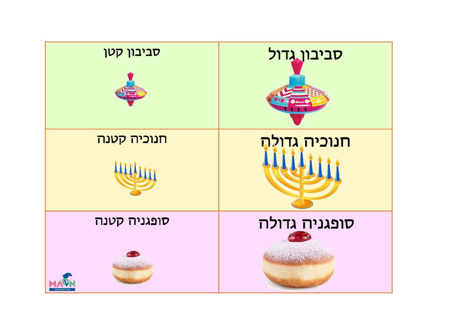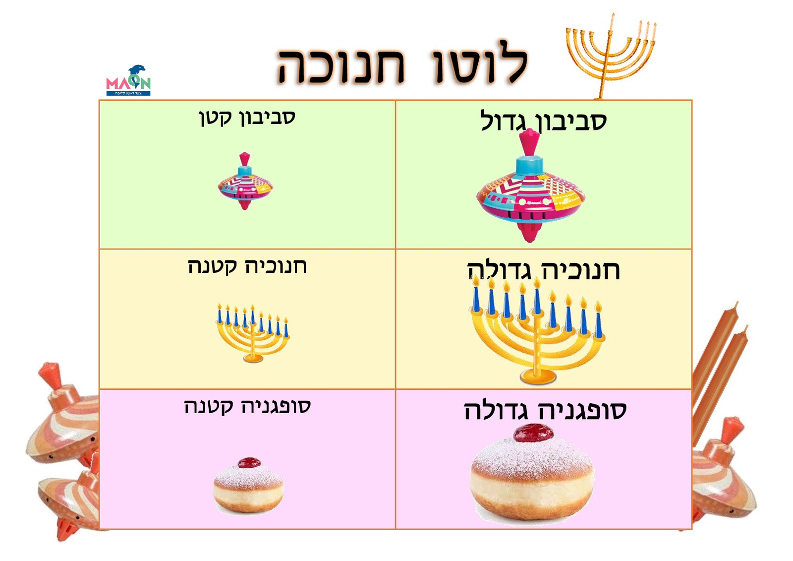 משחק לוטו צבעוני להכרת סמלי החנוכה.