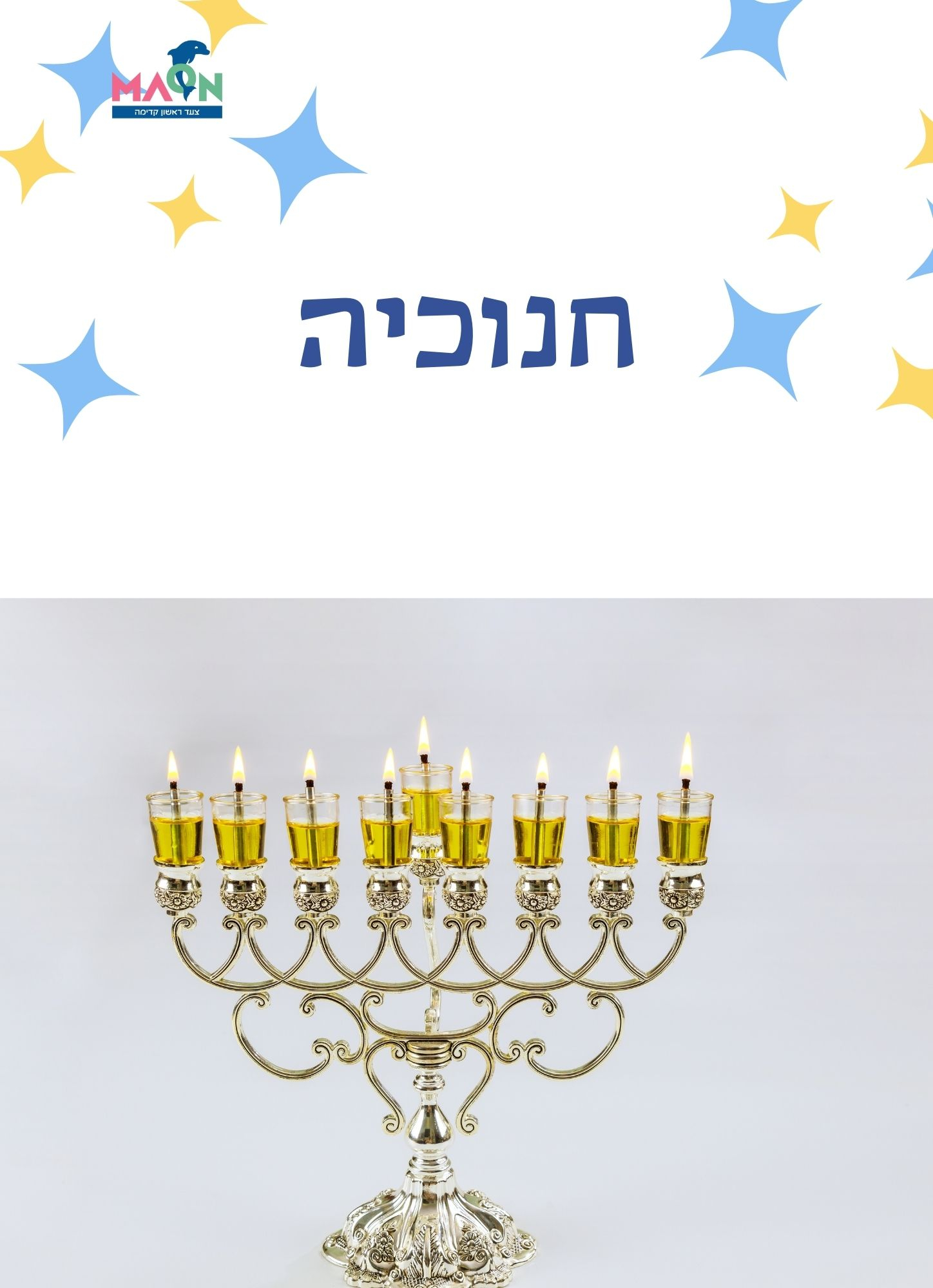 סמלי חנוכה צבעוניים להמחשה ואווירת חג.